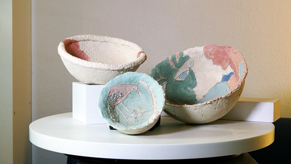 Insgesamt 12 Tonschalen symbolisieren unsere unterschiedlichen Kräfte, sie mit Mitgefühl für den Anderen füllen zu können.